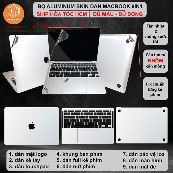 Bộ dán macbook Aluminum skin bảo vệ toàn diện
